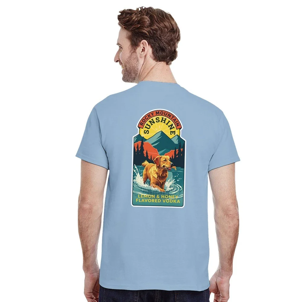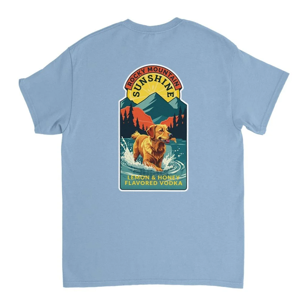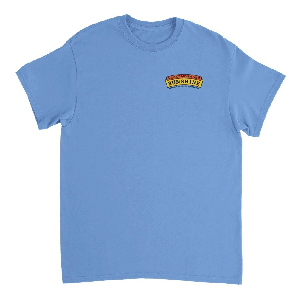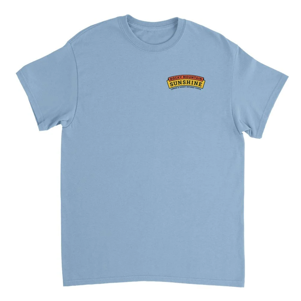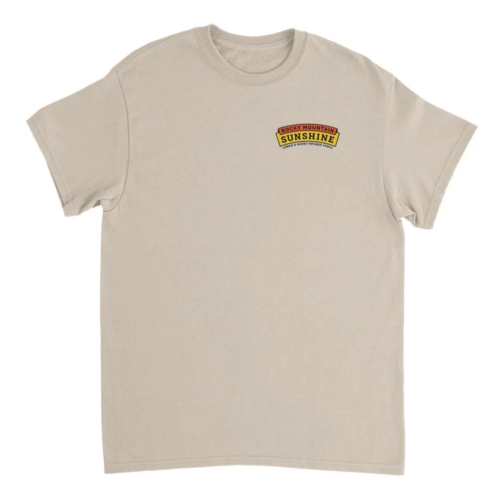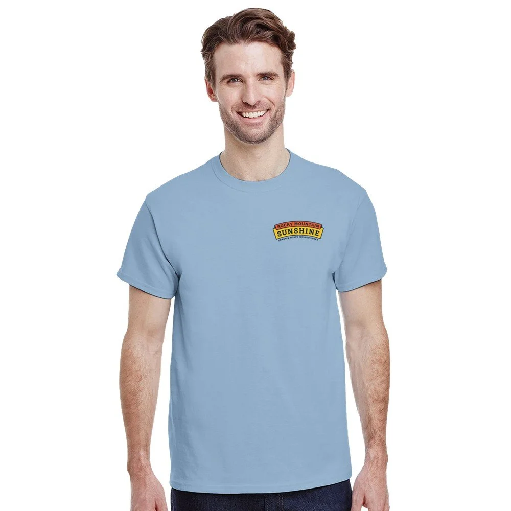Rocky Mountain Sunshine logo tee. Perfect for lounging, adventuring, and hanging. Made with heavyweight cotton for comfort and durability.